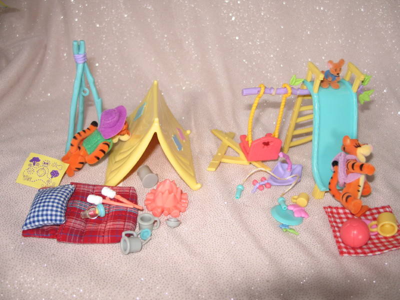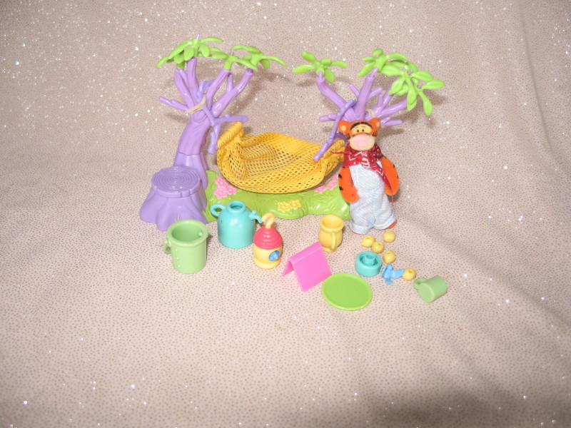 Lot 1. Vintage Mattel Pooh’s Friendly Places Delightful Days Treehouse 1999. Wow, a wonderful array including. Grand Treehouse, Very Grand Garden, Tigger’s Swinger Playground, Pooh’s Day At The Lake, Tigger’s Campout set, Eeyore’s Birthday, Tigger’s Hammock, Piglet’s Bath, and Treehouse accessories.