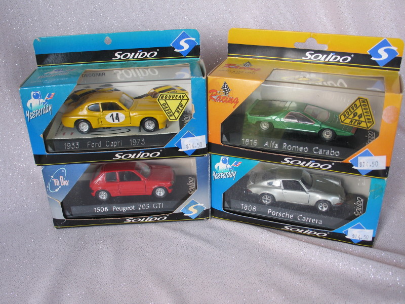 cars 1:40. Alfa Romeo Carabo 1816, Porsche Carrera 1808, Peugeot 205 GTI 1508, 1933 Ford Capri 1973.