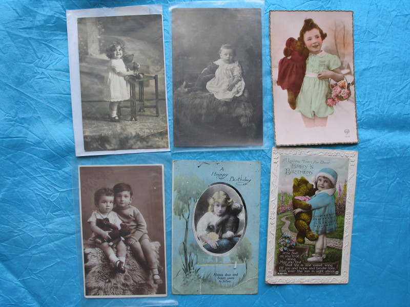 include embossed, hand-tinted, photo card kids/bears, German/UK/USA, most unused.