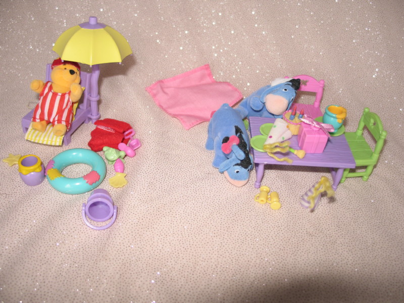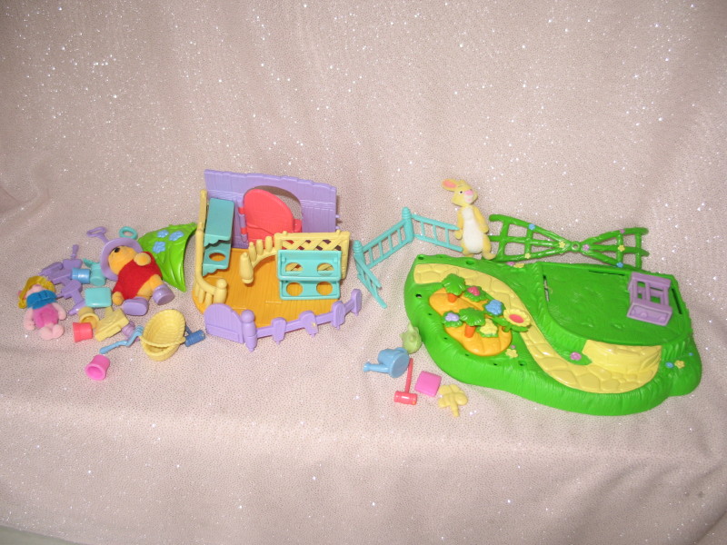 Lot 1. Vintage Mattel Pooh’s Friendly Places Delightful Days Treehouse 1999. Wow, a wonderful array including. Grand Treehouse, Very Grand Garden, Tigger’s Swinger Playground, Pooh’s Day At The Lake, Tigger’s Campout set, Eeyore’s Birthday, Tigger’s Hammock, Piglet’s Bath, and Treehouse accessories.