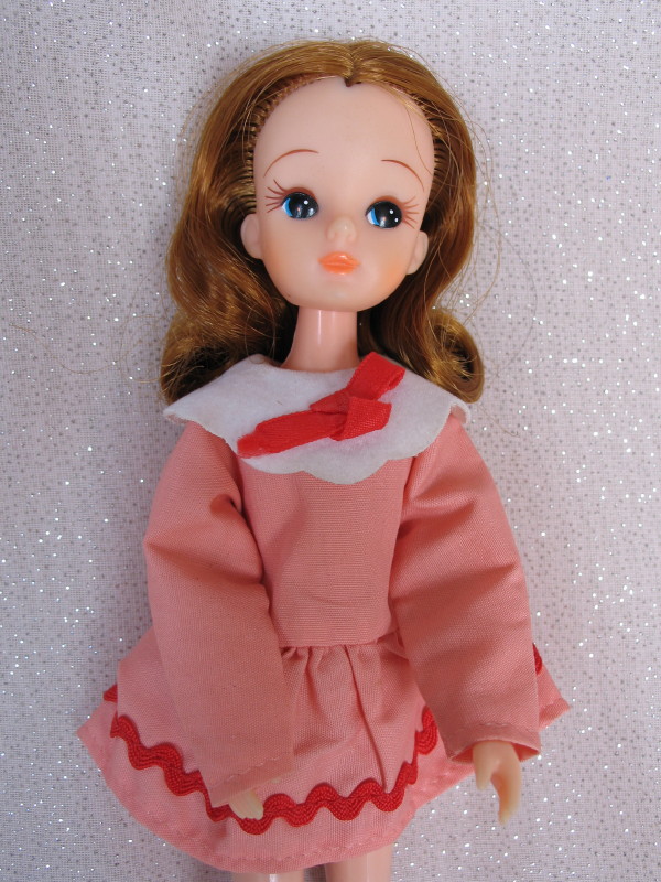 AND Takara “Licca-Chan Jenny” 3rd generation doll. Red hair, painted blue eyes, tagged pink dress, white heels, and undies. $100 – $200